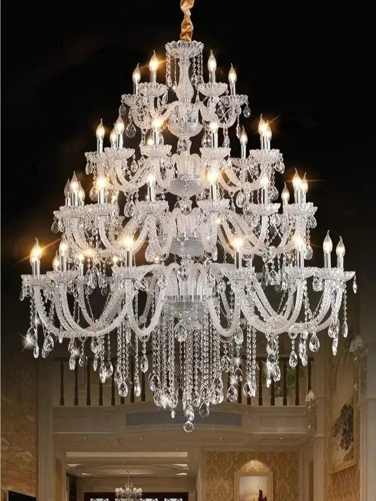 Apportez un style contemporain et luxueux à vos grands espaces avec ce lustre moderne pour grande salle signé AL.HaffaR. Fabriqué en verre, cristaux K9 de première qualité et métal, ce luminaire design apporte lumière et raffinement à vos salons, halls d’hôtel ou salles de réception.