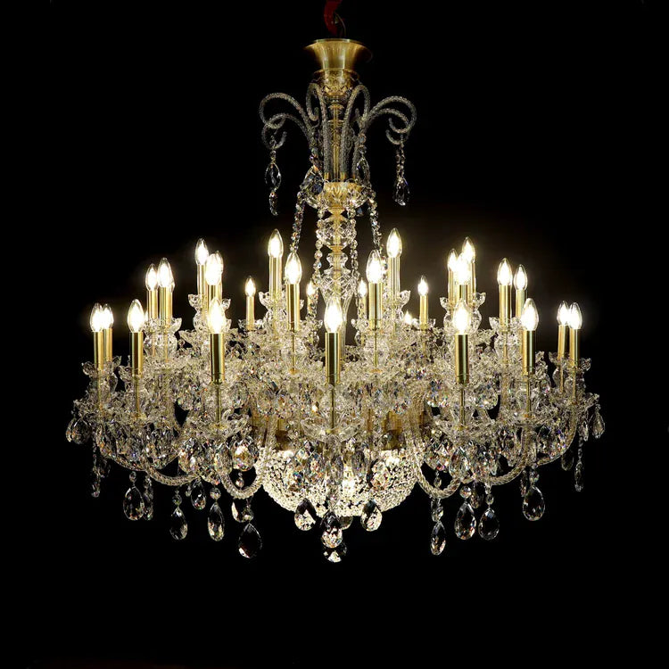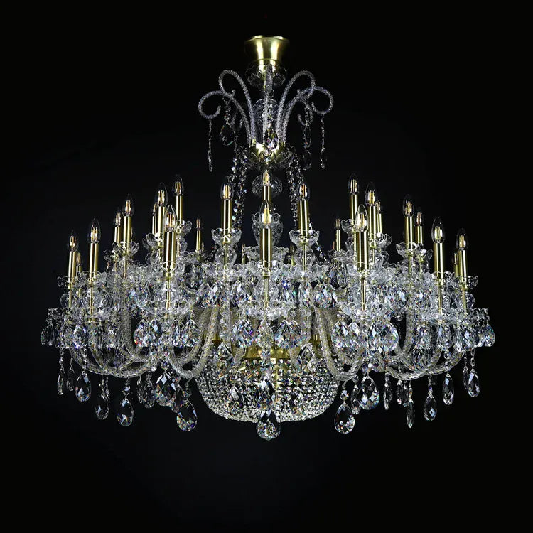 Pensé pour les espaces vastes, ce lustre cristal grand diamètre offre une solution idéale pour illuminer les volumes importants sans nécessiter une hauteur extrême. Le modèle le plus large, avec 215 cm de diamètre, est le lustre à bras en cristal le plus imposant de sa catégorie en largeur, parfait pour les salles spacieuses. Ce lustre pour hôtel de luxe associe design majestueux et performance lumineuse, tout en respectant les contraintes des établissements recevant du public. Ce luminaire décoratif doré devient un élément central qui attire le regard, optimise la perception de l’espace et contribue à une ambiance élégante et accueillante.