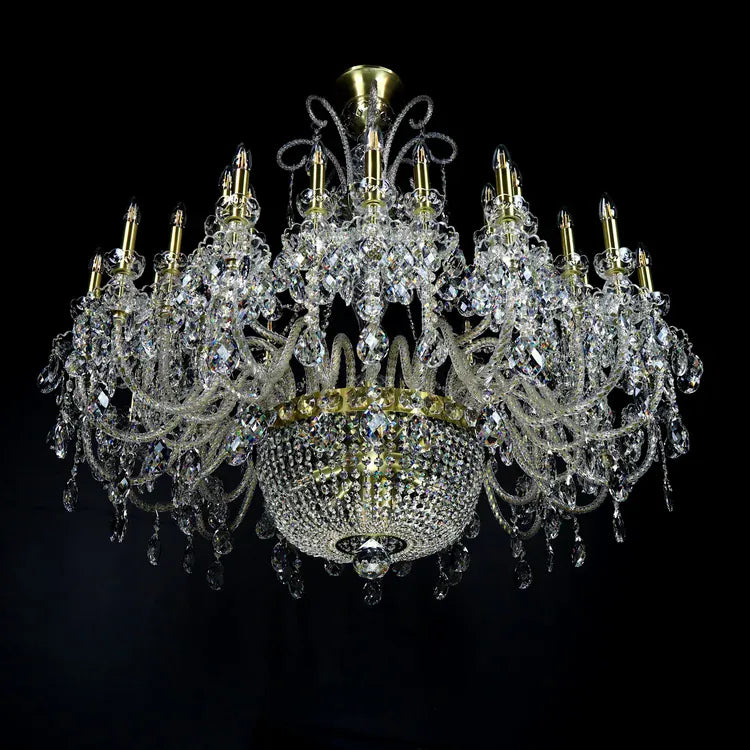 Le grand lustre cristal pour charpente haute de la collection Reign incarne l’excellence du lustre en cristal de luxe destiné aux espaces spectaculaires. Disponible en plusieurs configurations, ce lustre doré haut de gamme se distingue par son panier central en cristal richement travaillé et son design imposant. Ce lustre monumental est conçu pour offrir une présence visuelle forte tout en diffusant une lumière homogène et élégante. Idéal pour les halls d’hôtels, salles de réception ou grandes demeures, ce luminaire pour grande hauteur valorise l’architecture et renforce immédiatement l’image de prestige de votre intérieur.