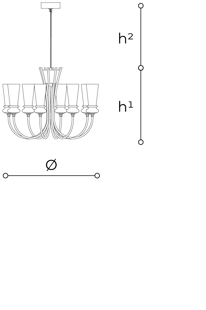 • Licio 2296/12 : Ø 85 cm · h1 47 cm · 12 × 6 W (E14)
