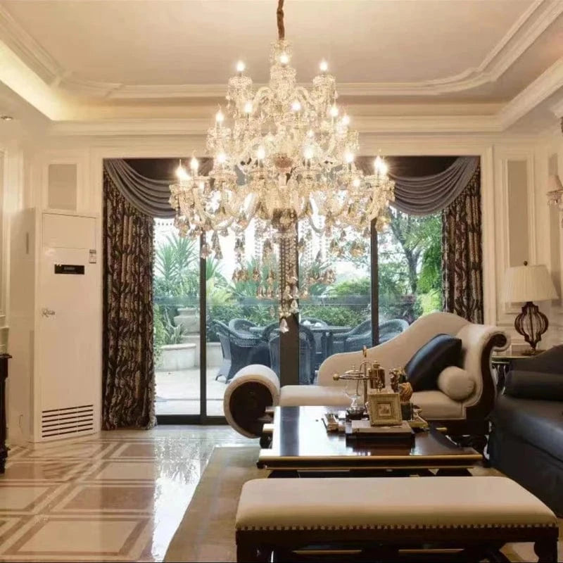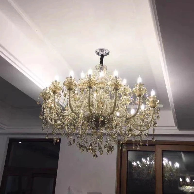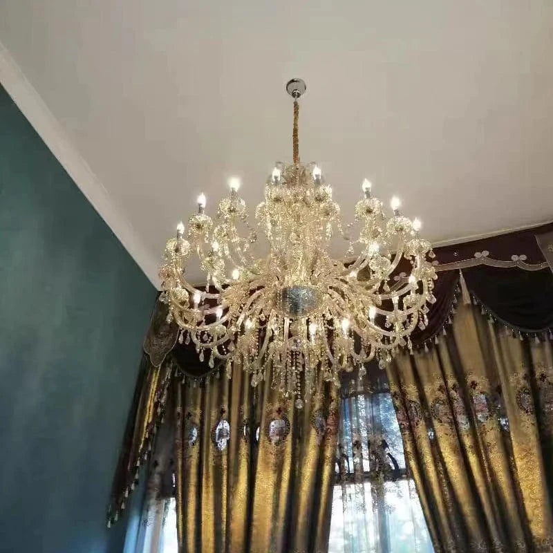 Apportez une touche de luxe à vos intérieurs avec ce lustre pour salles de réception. Son design moderne et sa finition en verre poli offrent un éclairage raffiné qui sublime aussi bien un salon, une salle de banquet qu’un hall d’hôtel. Véritable pièce décorative, il combine esthétique et performance lumineuse.