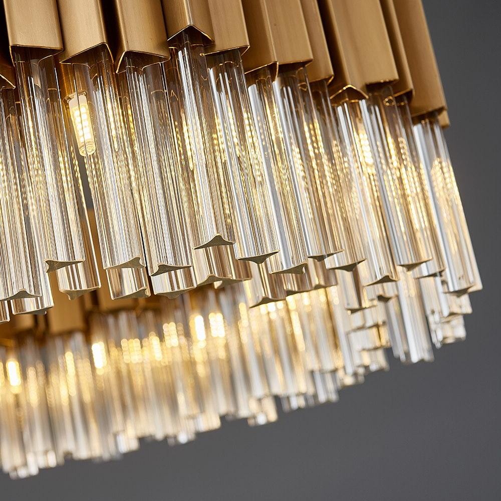Lustre salon circulaire en laiton et cristal conçu pour transformer votre espace en un lieu de prestige et de luminosité