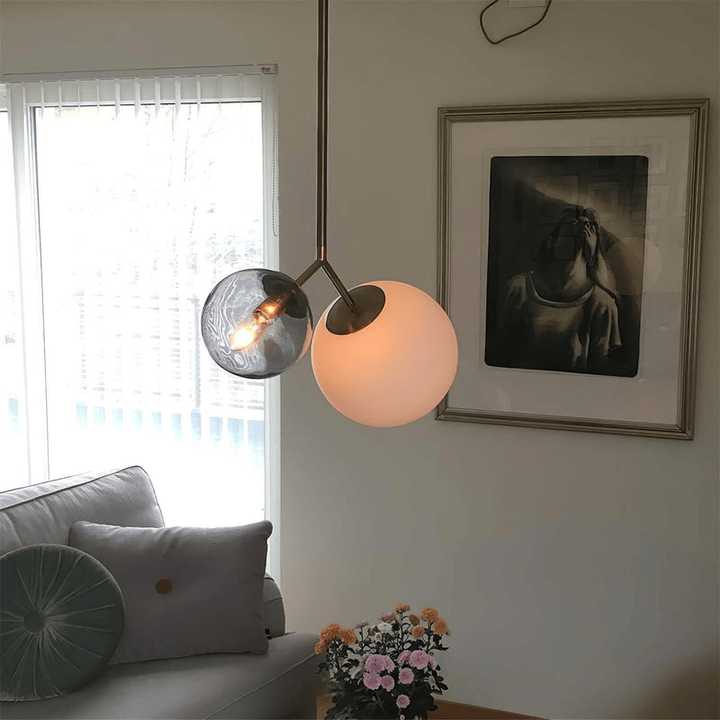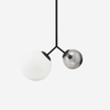 Cette double suspension luminaire incarne l’élégance du style contemporain à travers une composition géométrique audacieuse et parfaitement équilibrée. Deux globes en verre dépoli diffusent une lumière douce et enveloppante, suspendus de manière asymétrique à une structure élancée en laiton. Pensée comme un objet décoratif à part entière, cette suspension apporte une présence visuelle forte tout en conservant une grande légèreté esthétique.