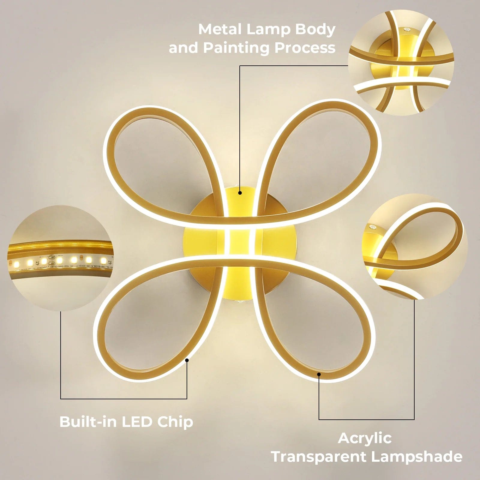 Ce plafonnier doré est conçu pour un montage intégré simple, offrant une lumière uniforme et économique grâce à ses ampoules à économie d’énergie incluses. Son design contemporain et raffiné valorise votre décoration tout en assurant un éclairage quotidien pratique, parfait pour créer une atmosphère chaleureuse et accueillante. La possibilité de réglage de l’intensité lumineuse permet de moduler l’ambiance selon vos besoins.
