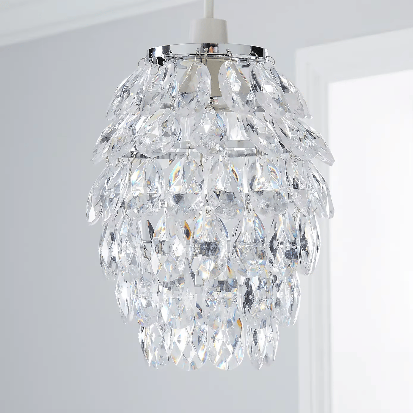 Luminaire suspendu décoratif en cristal acrylique à installer facilement sans électricien pour sublimer salon, chambre ou entrée