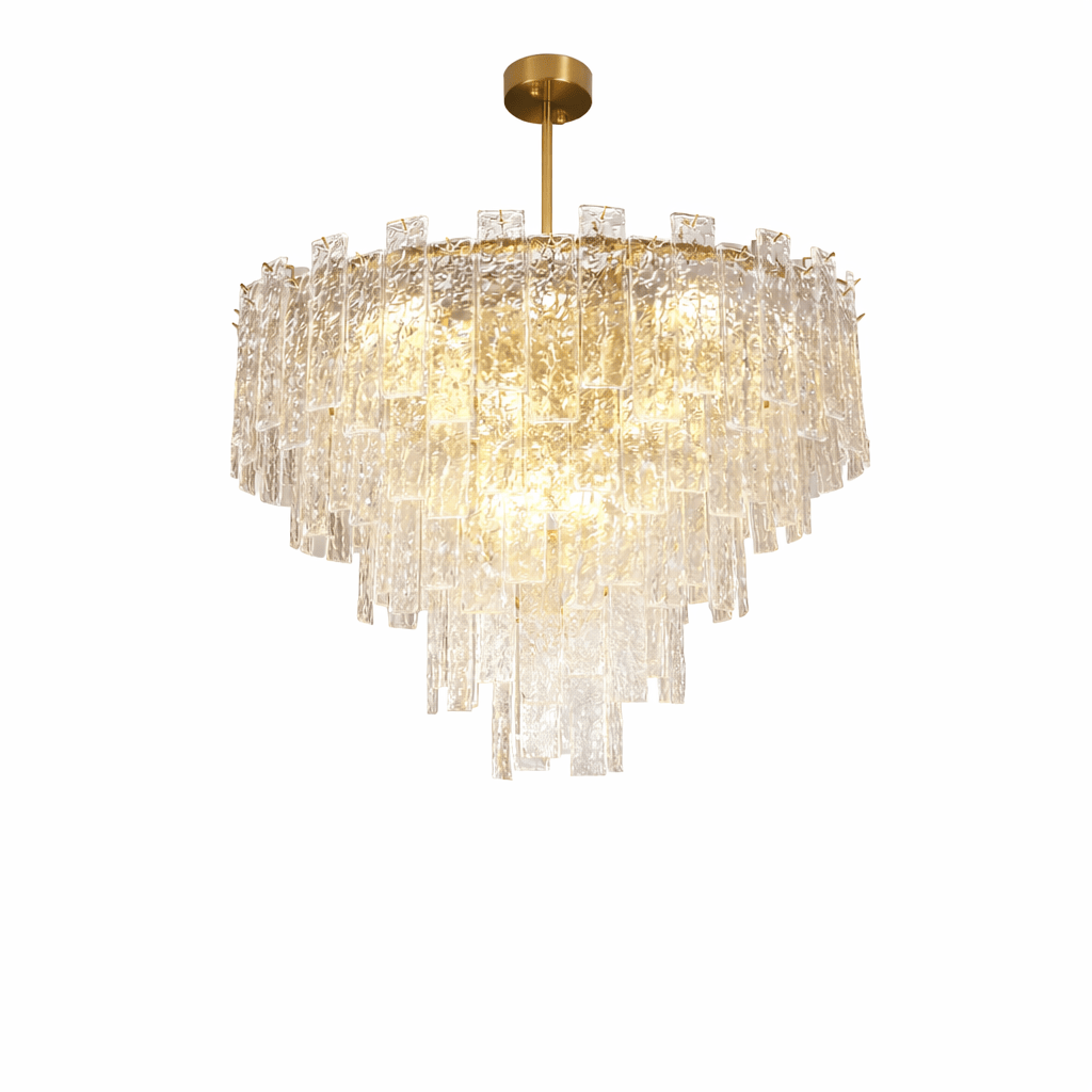 Idéal pour les salons, halls ou salles à manger, ce plafonnier en cristal design combine esthétique et fonctionnalité, offrant un éclairage modulable pour s’adapter à chaque ambiance. La disposition harmonieuse des fragments de cristal et la structure en acier inoxydable garantissent une diffusion lumineuse uniforme et captivante. Ce luminaire devient un véritable point focal, ajoutant raffinement, modernité et luxe à tout intérieur.