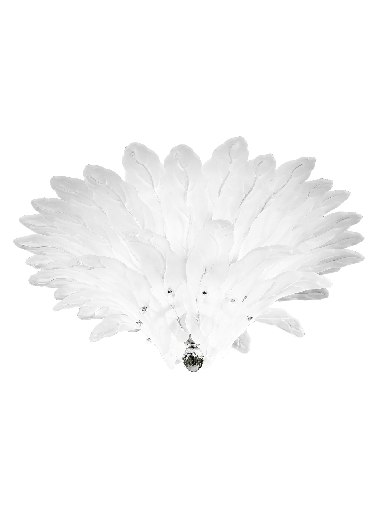 Lampe de plafond élégante avec feuilles en verre satiné ou transparent et structure métallique haut de gamme pour salon et salle à manger