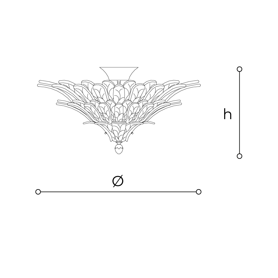 Plafonnier décoratif à feuilles en verre avec variation TRIAC et compatibilité domotique sur demande