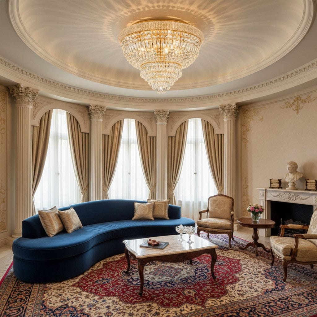 Ce plafonnier de luxe est conçu pour offrir une présence visuelle remarquable tout en garantissant une installation facile et durable. Sa structure métallique robuste supporte jusqu’à 24 ampoules E14 (max 28W), tandis que ses éléments en cristal créent une diffusion lumineuse homogène et scintillante. Adapté aux salons vintage, aux salles à manger ou aux espaces de réception, ce plafonnier italien combine élégance intemporelle et finition haut de gamme, offrant une atmosphère chaleureuse et sophistiquée.