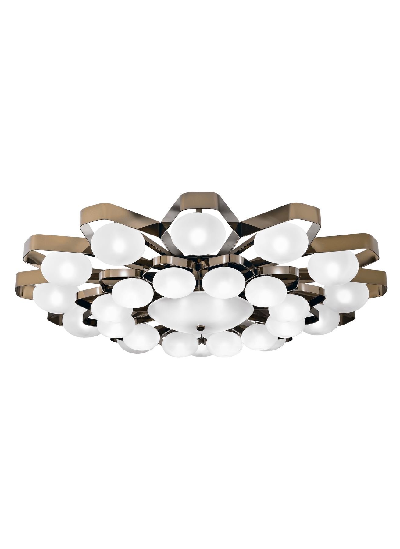 grand diamètre en métal finition or ou or nickel avec diffuseurs en verre soufflé satiné pour un éclairage décoratif haut de gamme - Fabrication en Italie