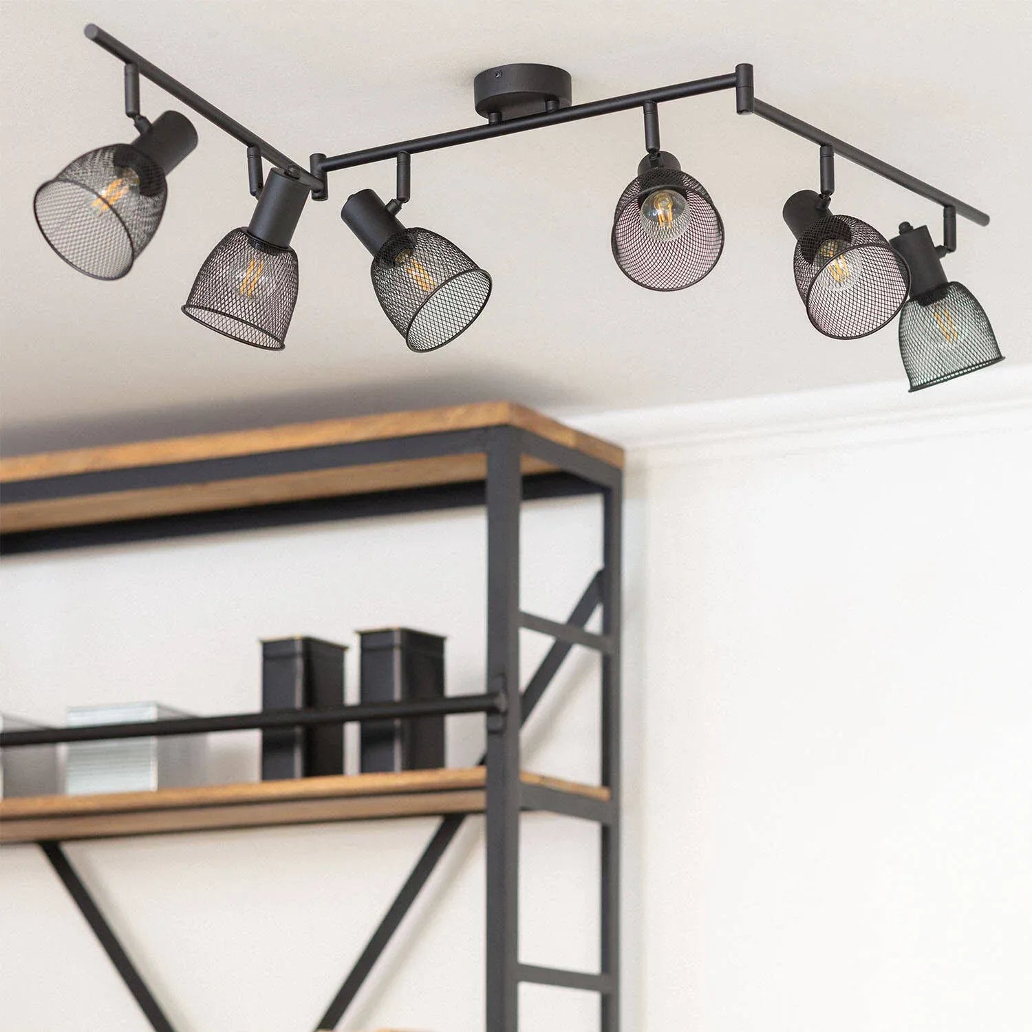 Avec son look graphique et sa ligne épurée, le plafonnier orientable aluminium Grid 6 spots apporte un éclairage précis et élégant à tous les espaces intérieurs. Sa structure en aluminium noir assure une finition haut de gamme et une excellente tenue dans le temps. Les six spots directionnels permettent de créer un éclairage sur mesure : vous orientez chaque faisceau selon vos besoins, pour mettre en valeur un coin lecture, une table, un mur décoratif ou des produits en vitrine. Compatible avec des ampoules E14, il vous laisse choisir l’intensité et le style lumineux (chaud, neutre, puissant ou d’ambiance) afin d’adapter parfaitement la lumière à chaque pièce.