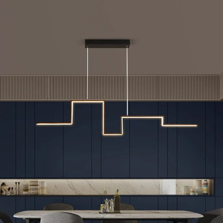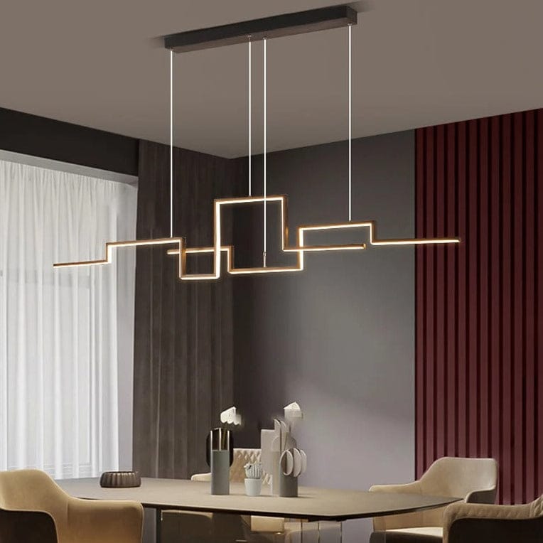 Chandelier LED géométrique noir pour salon, salle à manger et espace bar contemporain