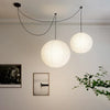 Grâce à sa structure en métal discret et ses boules en papier de riz finement réalisées, cette suspension apporte une lumière diffuse et équilibrée, créant une ambiance cosy et relaxante.