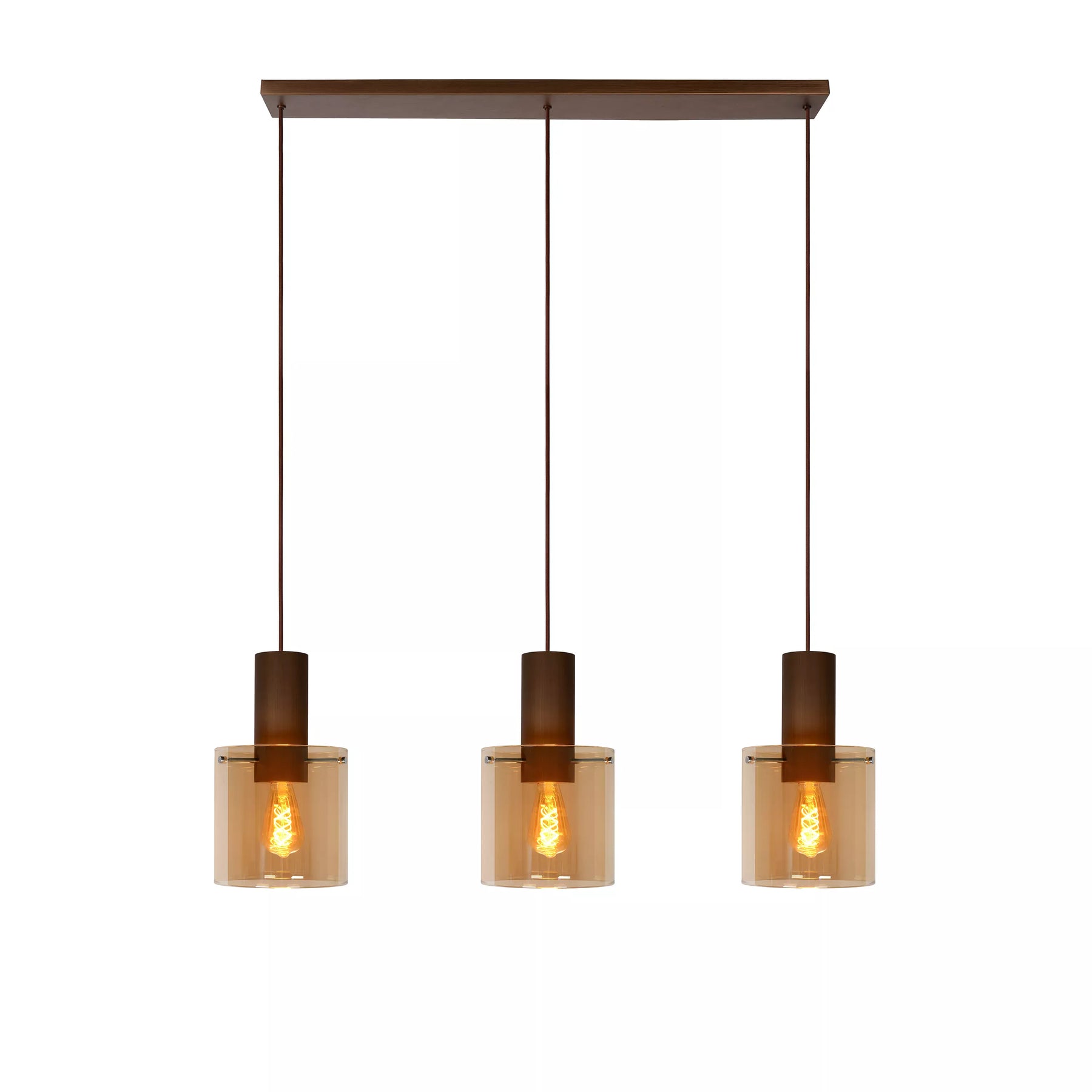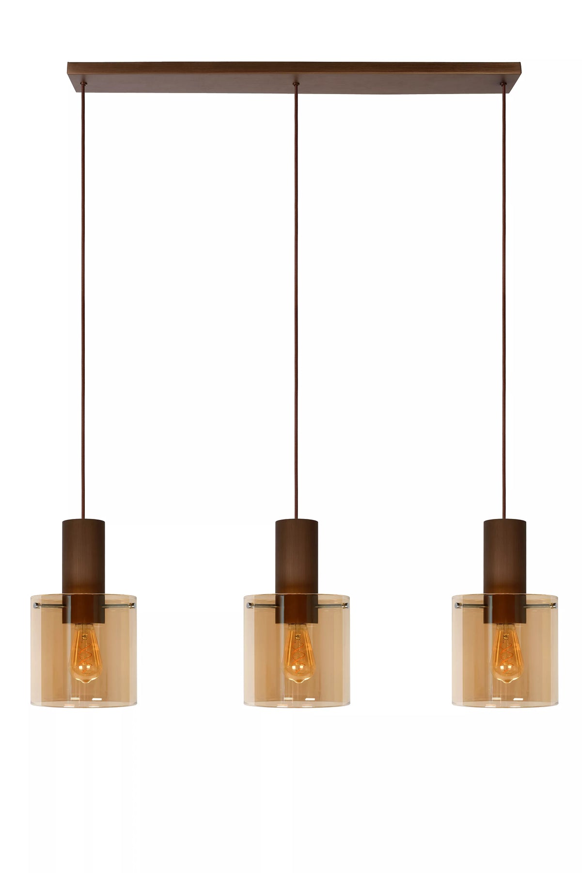 Suspension Lucide Toledo en verre ambré Ø 20 cm à trois lumières E27 au style vintage chaleureux