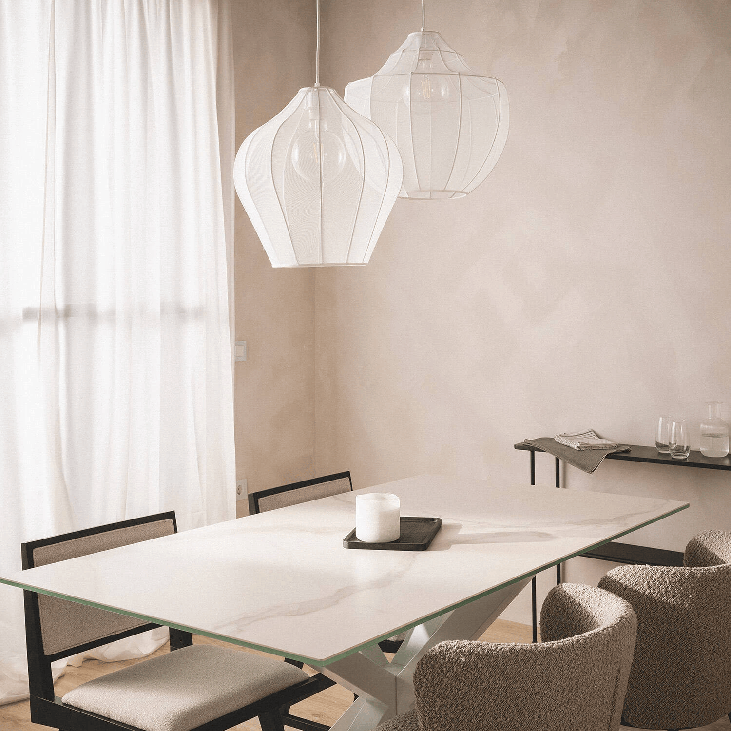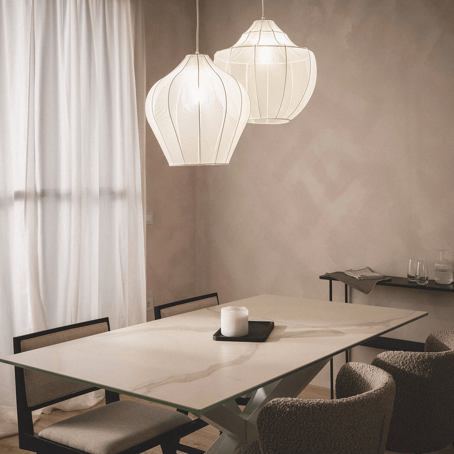 Conçue pour transformer vos espaces de vie, cette suspension bohème en métal et tissu diffuse une lumière enveloppante qui valorise chaque pièce. Dans un salon, une chambre, une salle d’accueil ou un espace commercial, elle devient un véritable point focal décoratif. Son design léger et poétique renforce le confort visuel et crée une atmosphère accueillante, propice à la détente et à la convivialité. Grâce à sa compatibilité avec les ampoules E27, vous adaptez facilement l’ambiance lumineuse selon vos envies, du blanc chaud au blanc neutre.