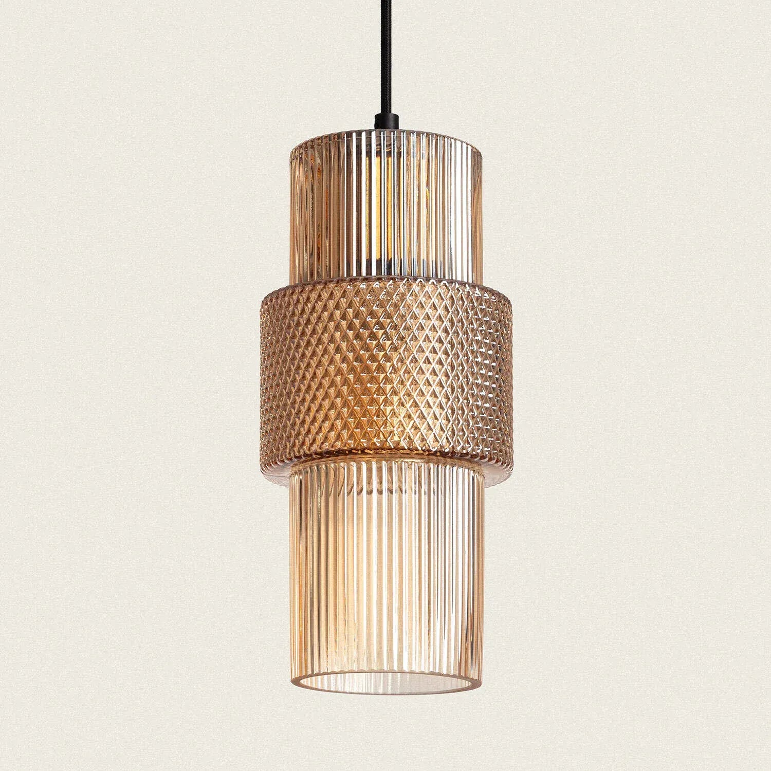 Suspension métal et verre Berila – luminaire suspendu design en métal et verre, finition ambre ou gris fumée, 1 ampoule E27, usage intérieur