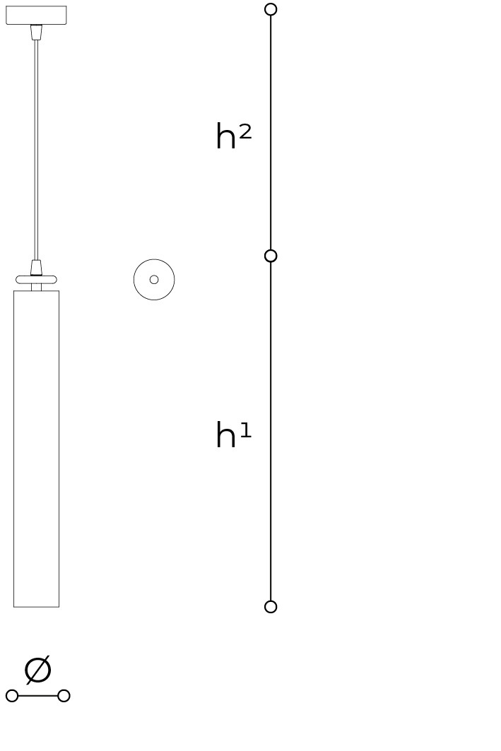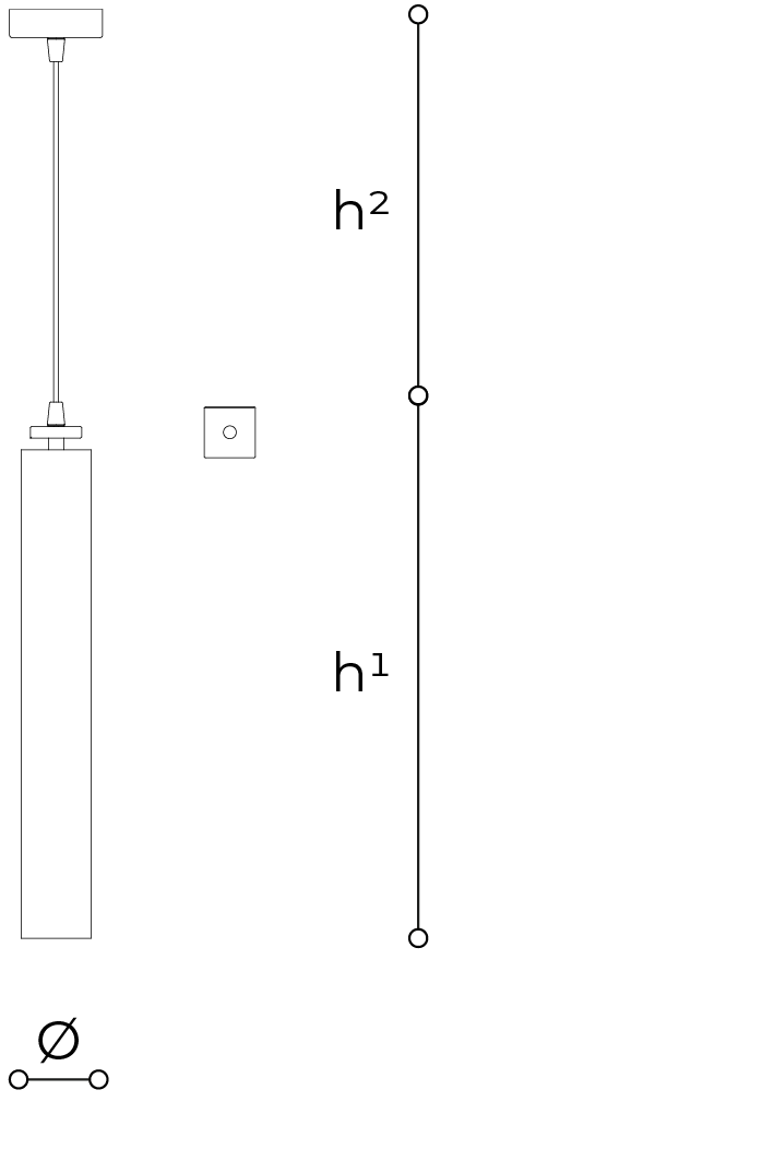 • Dimensions : Ø 6 cm, h1 46 cm, h2 réglable de 10 à 100 cm