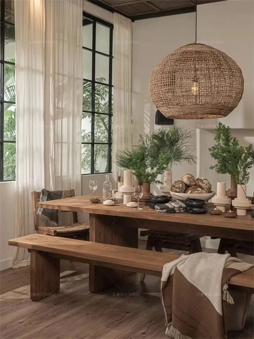 Wabi Sabi Weaving Chandelier Vintage Handmade Rattan Lantern Pendant Light Living Dining Room Home Retro Countryside Lighting